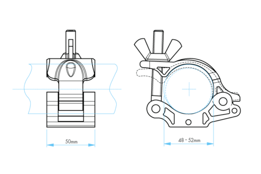 Specjalistyczna klamra Avenger C462-1 do mocowania i podwieszania różnych akcesoriów i sprzętu oświetleniowego na rurach i belkach o przekroju okrągłym. Umożliwia zamocowanie sprzętu o wadze nawet do 500kg na rurach o średnicy od 48mm do 52mm.