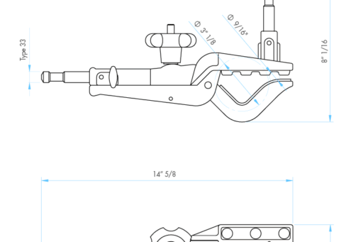 Specjalistyczna klamra o udźwigu 10kg z możliwością regulacji docisku. Umożliwia mocowanie i podwieszanie różnych akcesoriów i sprzętu oświetleniowego na belkach o średnicy od 10mm aż do 80mm. Klamra posiada dwa punkty mocowania sprzętu – trzpień stalowy o średnicy 16mm na górnej szczęce oraz gniazdo o średnicy 16mm na górnym uchwycie, a w nim trzpień stalowy blokowany pokrętłem.