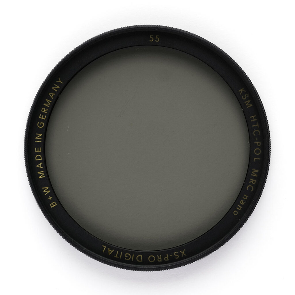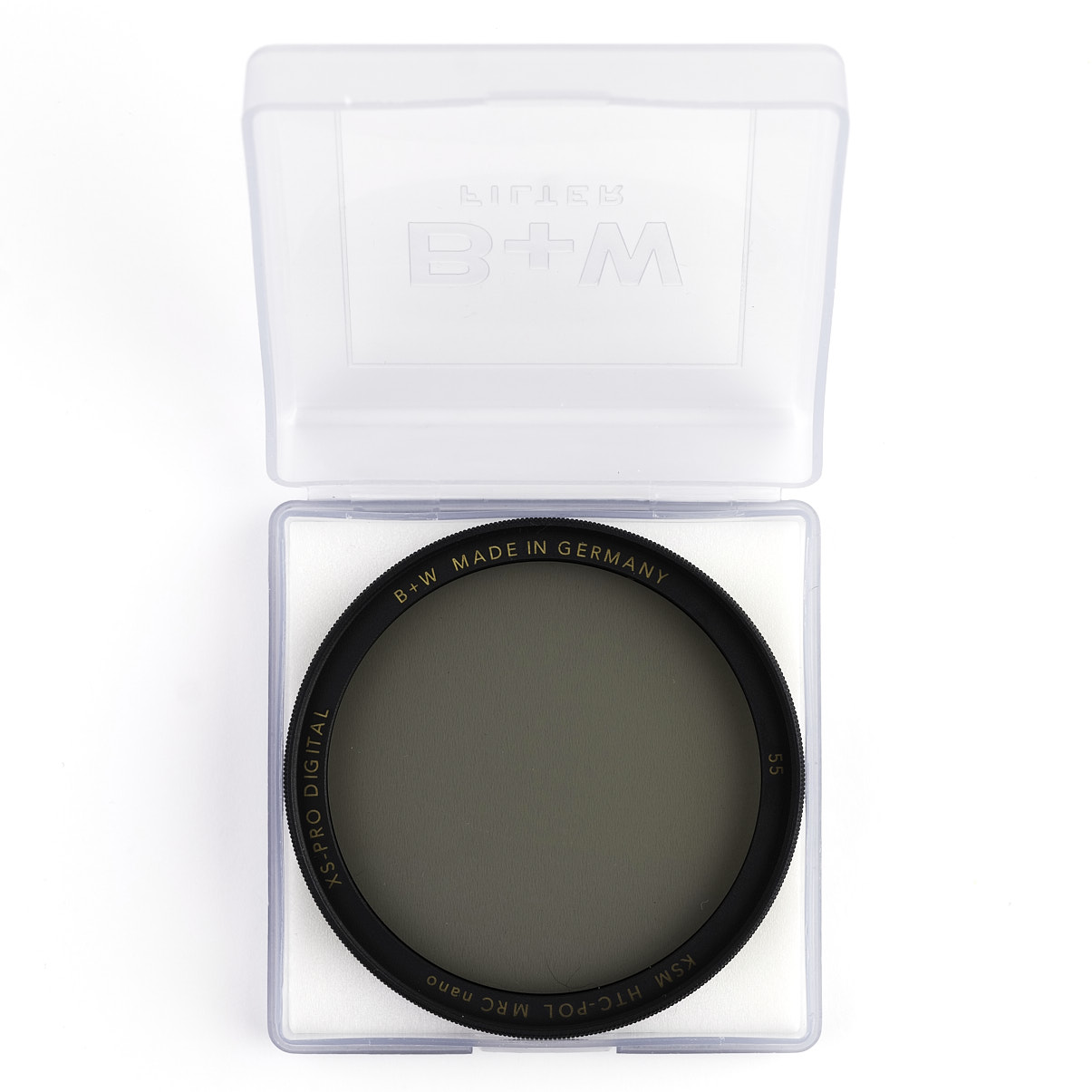Używany filtr polaryzacyjny B+W HTC-Pol KSM MRC nano XS-Pro o średnicy 55 mm. Stan idealny w plastikowym pudełku.