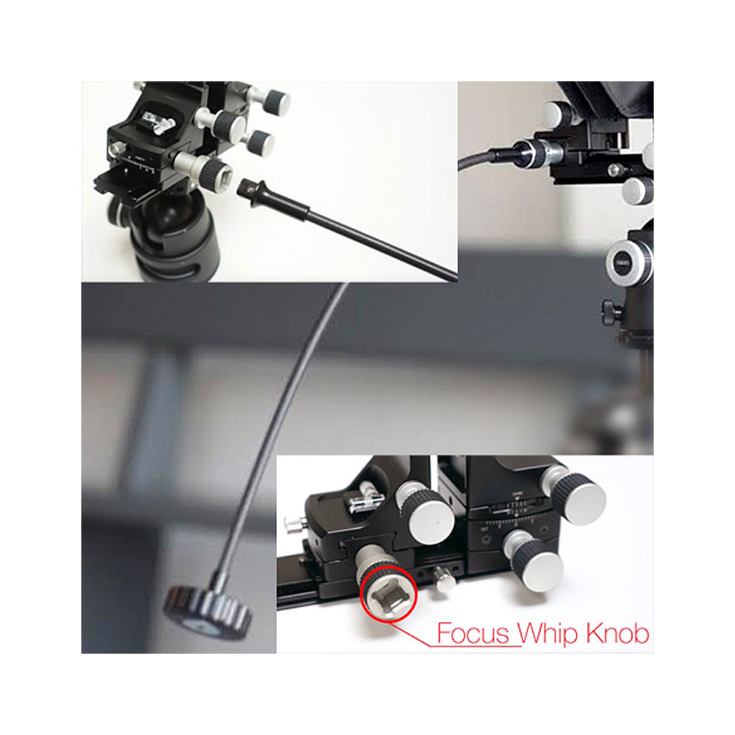 Focus Whip to elastyczny przewód zakończony dużym pokrętłem. Przy normalnym użytkowaniu elastyczny przedłużacz można łatwo odpiąć. Przykładami praktycznego zastosowania są nagrywanie wideo lub gdy konieczne jest zrobienie zdjęcia w krytycznym punkcie ostrości, który stale się porusza.