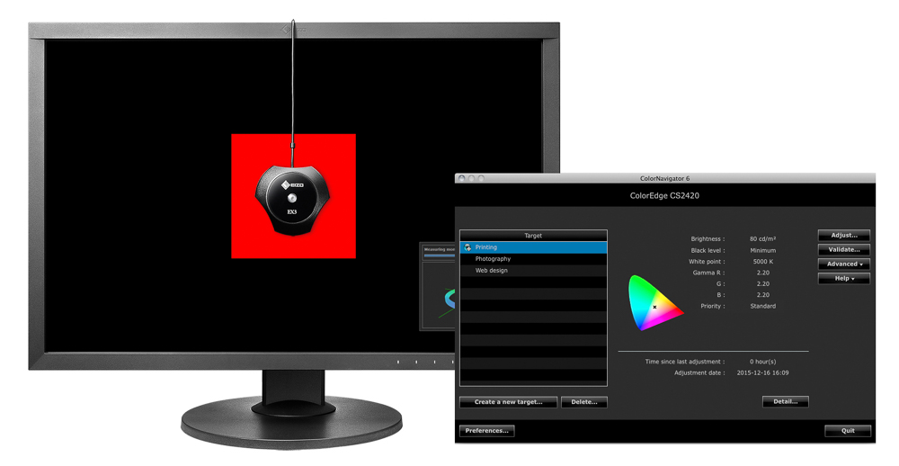 Monitor LCD z oprogramowaniem do sprzętowej kalibracji ColorNavigator – ma możliwość bardzo precyzyjnej sprzętowej kalibracji przy pomocy większości dostępnych na rynku kalibratorów
