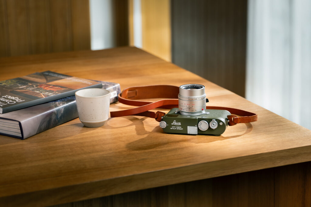 Aparat Leica M11-P Safari kontynuuje długą tradycję edycji Safari, które wyróżniały się od lat 70 dzięki oliwkowo-zielonej kolorystyce. Subtelne cechy wzornictwa podkreślają ekskluzywną estetykę tej specjalnej edycji.