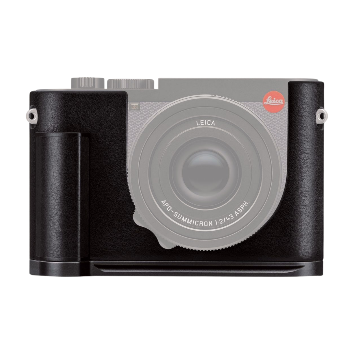 Po zamontowaniu etui Leica Q3 lub Leica Q3 43 zyskują nie tylko lepszą ergonomię pracy, ale również szybkozłączkę typu Arca Swiss do mocowania na statywie lub gimbalu do filmowania.