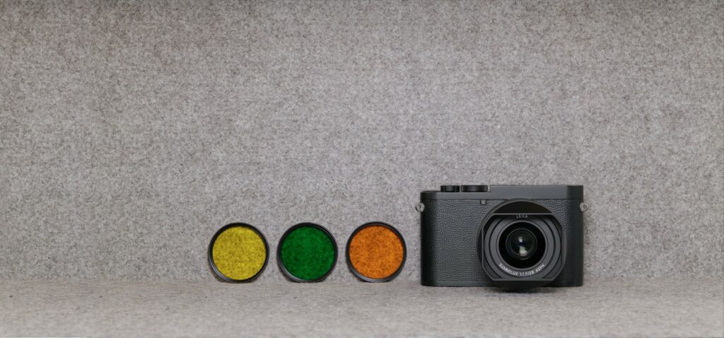 Q2 Monochrom to osobna gałąź system. Dlatego zdecydowaliśmy się na stworzenie szerokiej gamy opcjonalnych akcesoriów, które są dedykowane do tego aparatu. Należą do nich na przykład futerały i paski z najwyższej jakości skóry w różnych kolorach. Asortyment obejmuje również wyposażenie techniczne do Leica Q2 Monochrom, takie jak Leica SF 40, lampy błyskowe SF 60, zdalne sterowanie lampą błyskową SF C1, dodatkowy podparcie na kciuk i uchwyt z dopasowanej skóry ekologicznej. Specjalnie dla tego aparatu, stworzyliśmy trzy nowe filtry barwne E49 w kolorze żółtym, zielonym i pomarańczowym.