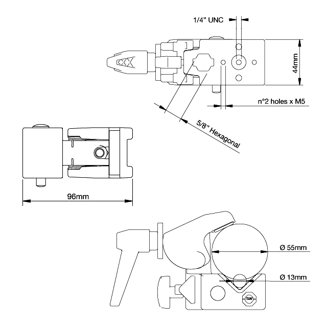 Wszechstronna klamra może z łatwością utrzymać obciążenie do 15 kg, co czyni ją naprawdę wytrzymałym zaciskiem fotograficznym. Mimo to, dzięki aluminiowemu korpusowi, waży zaledwie 410 g, dzięki czemu jest bardzo łatwa do przenoszenia, nawet na końcu wymagającej sesji. Klamra umożliwia pełną kontrolę, zapewniając szybkie, pewne i dokładne efekty. Zaciski klamry mają rozstaw od 13 mm do maksymalnych 55 mm, dzięki czemu można ją bez żadnych problemów sparować z różnymi akcesoriami.