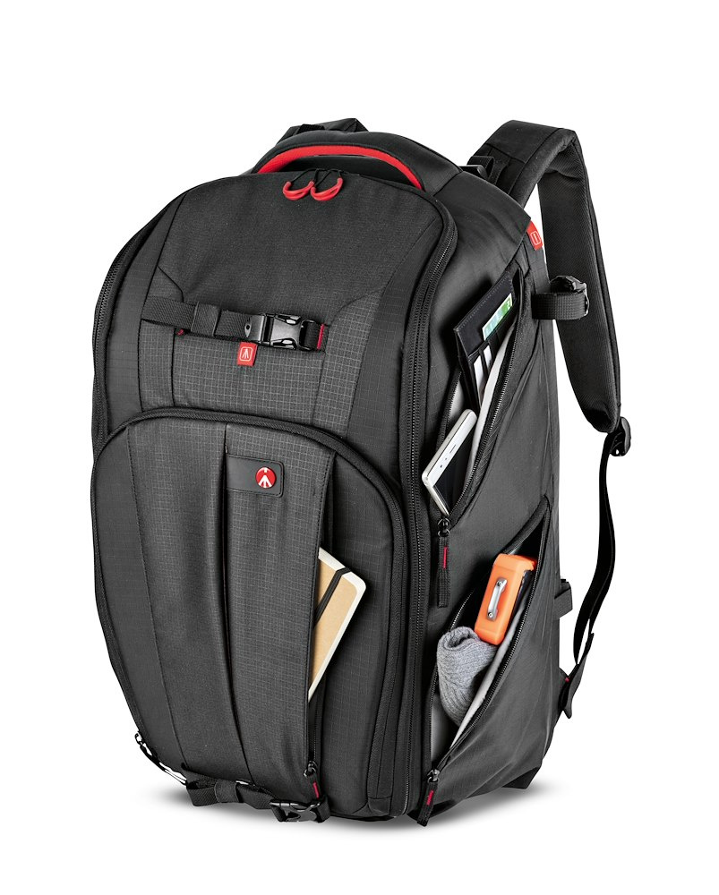 Dzięki rozszerzanemu frontowi, plecak można powiększyć, aby pomieścił kamerę z zamontowanym uchwytem. Za pomocą prostego ruchu można powiększyć torbę i zmienić jej układ. Gdy plecak musi być jak najmniejszy w podróży, przedni panel może być z łatwością złożony, aby mieścił się w standardach bagażu podręcznego.