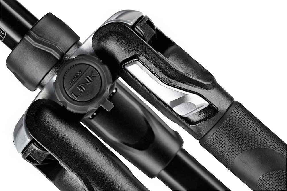Jarzmo statywu wyposażono w gniazdo akcesoriów Easy Link, podobnie jak w profesjonalnych seriach 190 i 055 firmy Manfrotto. Ta funkcja pozwala fotografom zwiększać ich kreatywność poprzez dodanie akcesoriów, które sprawiają, że obrazy są wyjątkowe i niezapomniane. Jeśli chcesz dodać światła lub blendy, możesz teraz uchwycić niesamowite zdjęcia na świeżym powietrzu, które wcześniej były osiągalne tylko przy użyciu ciężkich statywów lub ich większej ilości.