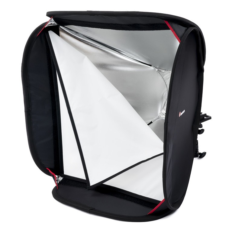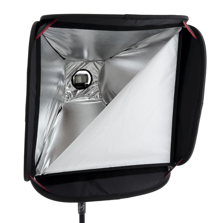 Specjalnie zaprojektowany do łatwego użytkowania softbox Manfrotto SpeedBox 54 umożliwia niemal natychmiastowe rozłożenie bez konieczności użycia jakichkolwiek narzędzi. Softbox w zestawie zawiera uchwyt umożliwiający zamontowanie lampy błyskowej na statywie oświetleniowym. Manfrotto SpeedBox 54 posiada srebrne wnętrze, które zapewnia równomierne rozłożenia światła przechodzącego przez softbox.