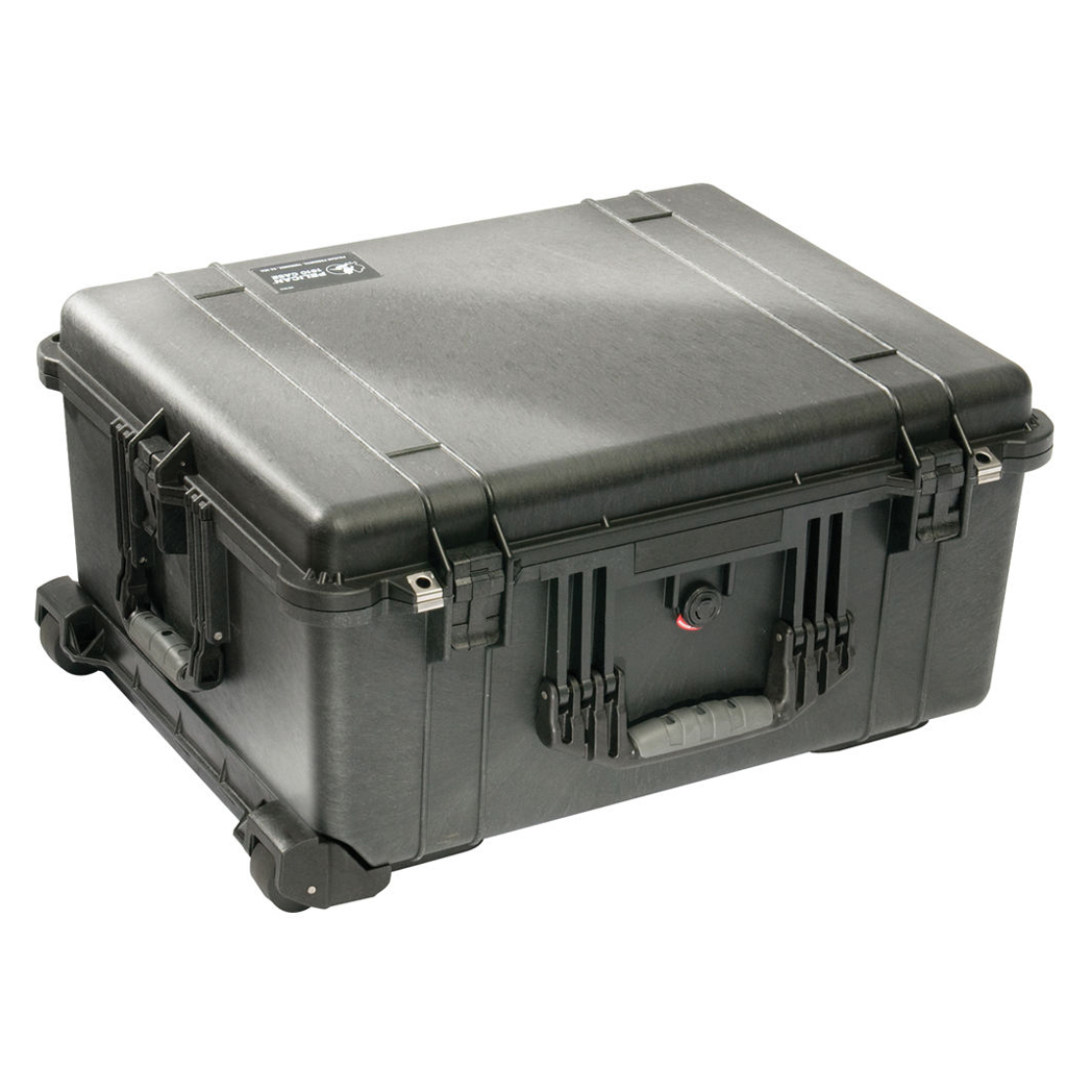 Skrzynia Peli™ model 1610 jest wodoszczelna i pyłoszczelna (O-ring + automatyczne zawory rozszczelniający), charakteryzuje się lekką, a jednocześnie wytrzymałą konstrukcją o dużej odporności na zgniecenie. Łatwość otwierania zapewniają dwustopniowe zatrzaski, na wygodny transport pozwalają duże składane uchwyty. Wyposażona w wytrzymałe kółka poliuretanowe z łożyskami ze stali nierdzewnej oraz chowany uchwyt teleskopowy.