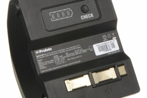 Akumulator litowo-jonowy do lamp Profoto B1 i B1X AirTTL zapewnia do 325 błysków z pełną mocą i tysiące błysków o minimalnej mocy przy 2,5-godzinnym ładowaniu z ładowarki wielonapięciowej 2,8A. Szybka ładowarka 4,5A skraca ten czas do 1,5 godziny.