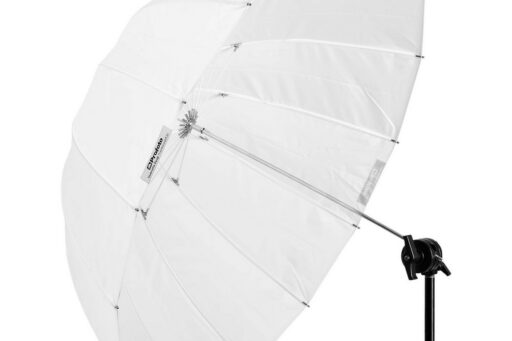 Parasol Profoto Deep M Translucent to średniej wielkości 105 cm, głęboki paraboliczny parasol. Wykonany z wysokiej jakości tkanin opornych na ciepło. 16 prętów z włókna szklanego tworzy okrągłe i bardziej równomierne rozprzestrzenianie się światła. Głębszy kształt parasola daje fotografowi lepszą kontrolę, pozwala na dostosowanie skupienia i kształtu światła.