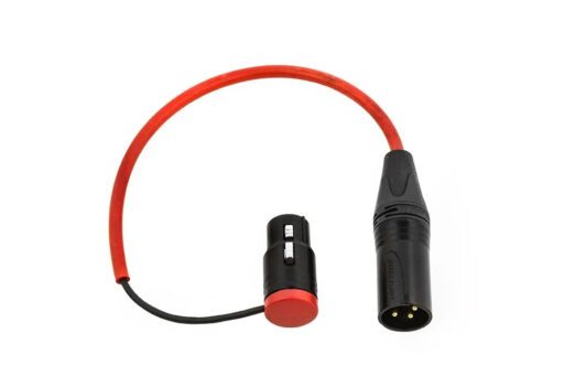 Wyjściowy męski XLR zablokowany w pozycji pod kątem na lekkim adapterze wysięgnika, umożliwiając bezpieczne podłączenie wewnętrznych lub zewnętrznych kabli biegunowych i nadajników wtykowych.