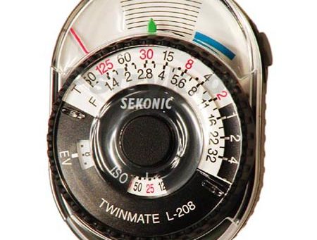Sekonic L-208 TWINMATE to analogowy miernik światła wielkości dłoni. Można go zamontować na aparacie lub wsporniku za pomocą dołączonego adaptera gorącej stopki, aby uzyskać szybkie odczyty referencyjne w pozycji aparatu. Choć zaprojektowany głównie dla początkujących użytkowników, długoletni strzelcy postrzegają Sekonic L-208 TWINMATE jako dokładny, łatwy do przechowywania miernik zapasowy. Właściciele aparatów dalmierzowych, również docenią dołączone mocowanie stopki.