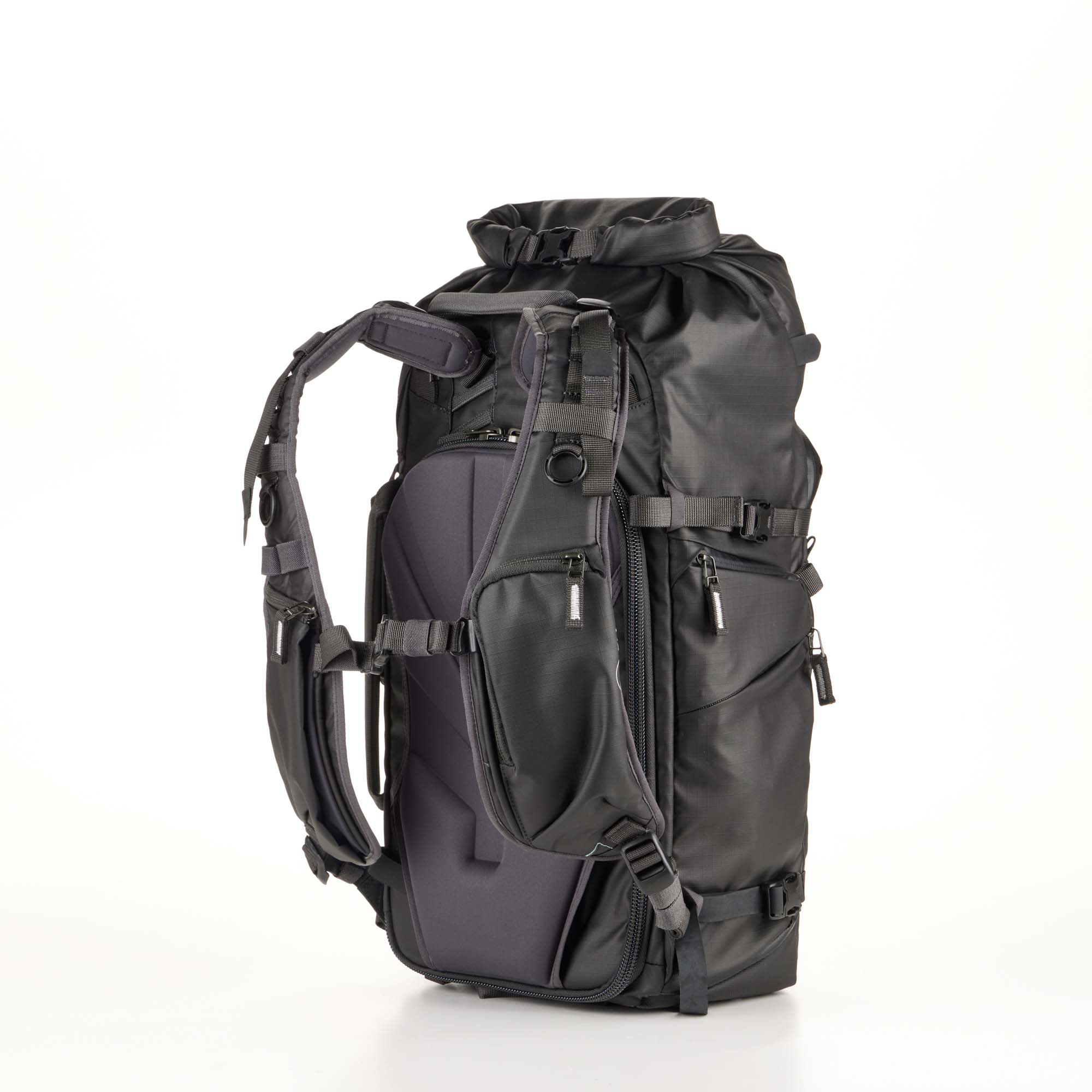 Konstrukcja plecaka oferuje dwie ścieżki dostępu do transportowanego sprzętu – boczną i tylną. Boczny otwór jest idealny do natychmiastowego dostępu do aparatu bez konieczności zdejmowania plecaka z ramienia. Tylny otwór natomiast umożliwia pełny wgląd do całości sprzętu znajdującego się w komorze głównej.