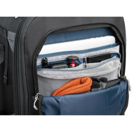 Pozostałe rozwiązania są bliźniacze z innym modelami serii Action X v2. Konstrukcja oferuje dwie główne ścieżki dostępu do transportowanego sprzętu fotograficznego – boczną i tylną. Boczny otwór jest idealny do natychmiastowego dostępu do aparatu bez konieczności zdejmowania plecaka z ramienia. Tylny otwór natomiast zapewnia pełny dostęp do sprzętu,  znajdującego się w komorze głównej.  W przypadku stosowania największego wkładu istnieje również 3 droga dostępu do sprzętu – od góry poprzez rozwijany komin. Jest to jedyne sensowne rozwiązani w przypadku wyjmowania podpiętego do aparatu obiektywu typu 600mm f4.