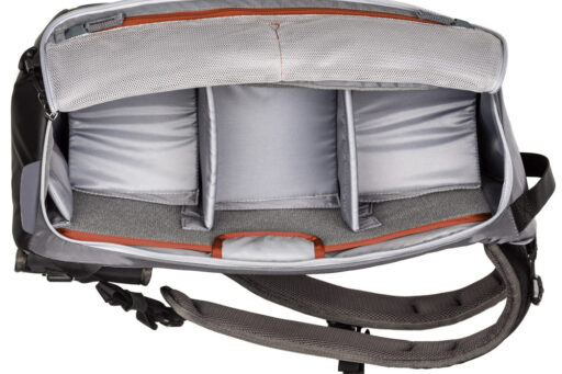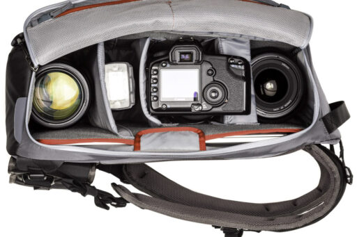 Zbudowany, aby dopasować się do ciała, Photocross 15 jest zaprojektowany do obracania się z pleców do przodu, aby uzyskać łatwy dostęp do komory aparatu. Dostęp do komory aparatu jest przez zamek błyskawiczny. Wzdłuż wnętrza znajdują się dwie zapinane na zamek, kieszenie organizacyjne z siatki, które mogą być używane do przechowywania i organizowania baterii, kart pamięci lub małej elektroniki. W komorze aparatu i z boku plecaka jest dostęp do kieszeni na 15-calowy laptop, podczas gdy sześć regulowanych i wymiennych przegródek umożliwia skonfigurowanie przestrzeni plecaka w zależności od określonego sprzętu wewnątrz.
