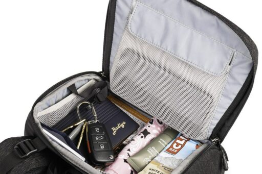 Kieszeń wzdłuż przedniego panelu Urban Access 15 odpina się i rozszerza, aby pomieścić przekąski, notebooki lub odzież. W przypadku innych przedmiotów, do których należy uzyskać szybki i wygodny dostęp, takich jak okulary przeciwsłoneczne lub słuchawki do odtwarzacza muzyki, na górze plecaka znajduje się zapinana na zamek przegroda z dodatkowymi siateczkowymi kieszeniami organizacyjnymi.