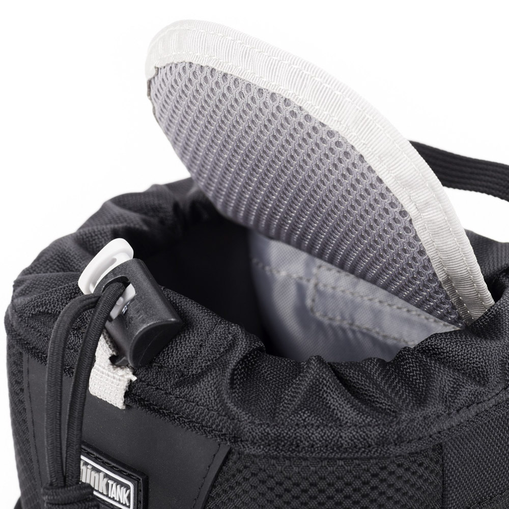 Pokrowiec Think Tank Lens Changer 35 V3.0 jest częścią modułowego systemu pasów. To wodoodporny nylonowy pokrowiec przeznaczony do przechowywania kompaktowych obiektywów zmiennoogniskowych, takich jak 24-70mm f/2.8 lub 70-200mm f/4 z osłoną obiektywu. Futerał na obiektyw mocuje się do dowolnego paska, pasa Think Tank lub plecaka, dzięki czemu można go z łatwością używać podczas fotografowania i zmieniać obiektywy w podróży.
