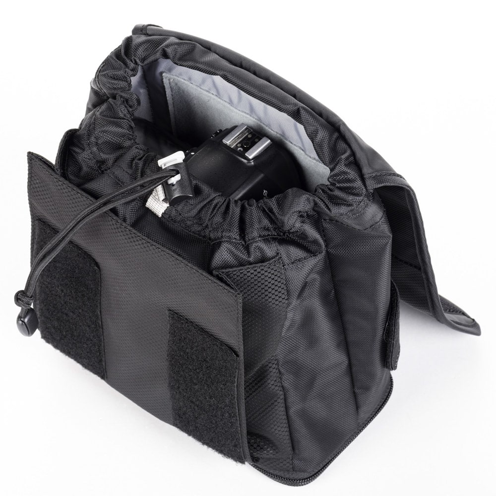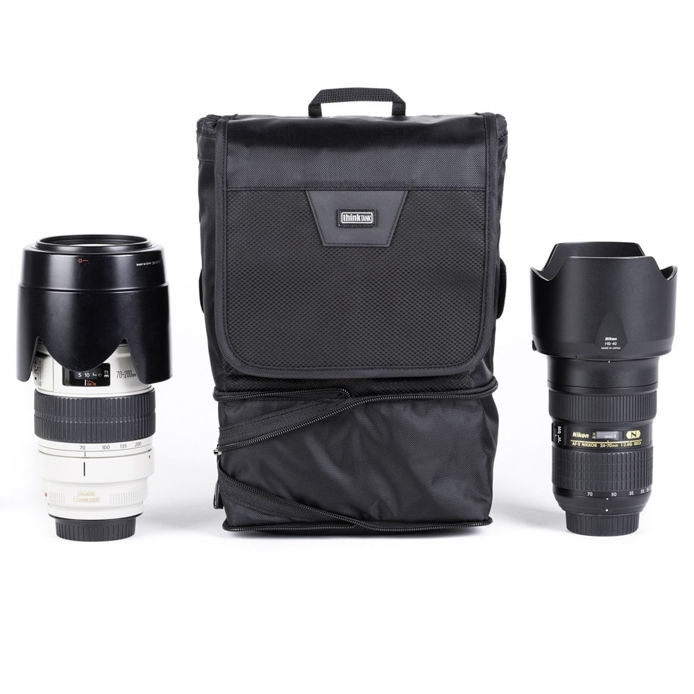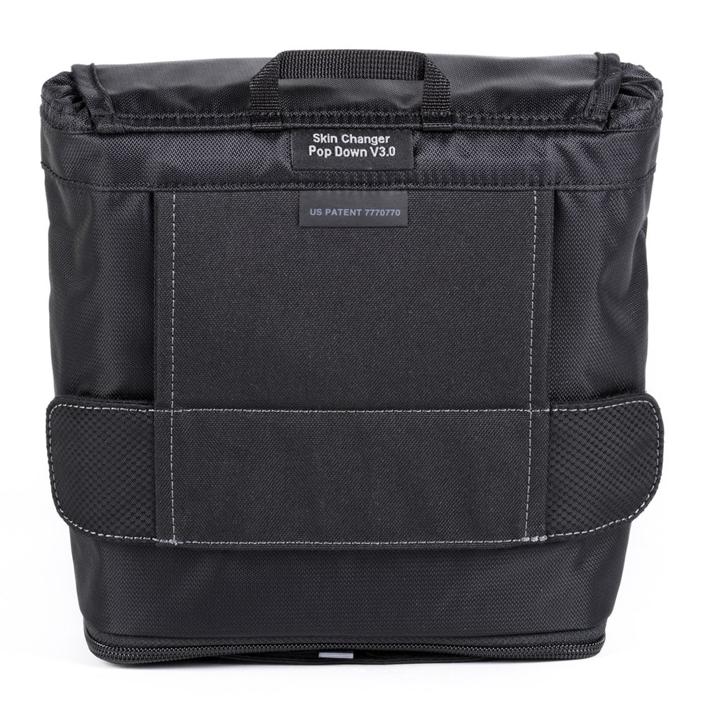 Skin Changer Pop Down V3.0 to lekki pokrowiec przeznaczony do przechowywania jednego korpusu lustrzanki cyfrowej z dołączonym gripem, teleobiektywu zmiennoogniskowego lub pary mniejszech obiektywów. Unikalna konstrukcja Pop Down pozwala zwiększyć wysokość torby o 3,6 cala, aby pomieścić wyższe obiektywy lub dołączone osłony obiektywu, a także posiada wewnętrzną kieszeń na mniejsze akcesoria, a także przednią kieszeń zapinaną na zamek na osłony obiektywu. Konstrukcja etui ma zapięcie na sznurek dla szybkiego dostępu i dla bezpieczniejszego zapięcia na rzepy Sound Silencers. Zewnętrzna część woreczka jest wykonana z nylonu 420D i poliestru 600D. Jest również dołączona powłoka wodoodporna z uszczelnionymi szwami aby chronić pokorwiec przed deszczem. Jego konstrukcja obejmuje również uchwyt, dodatkowe punkty mocowania, a worek można obracać lub blokować na miejscu po przymocowaniu do kompatybilnego pasa Think Tank.