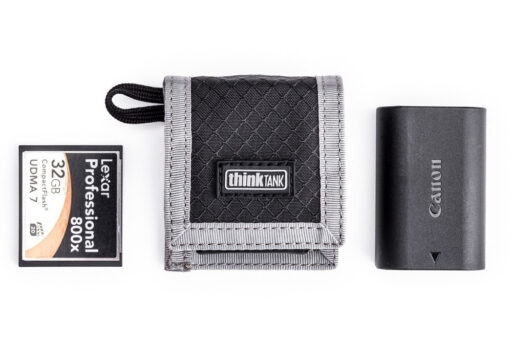Chroń swoje karty pamięci CF lub SD oraz baterie aparatu w bezpiecznym i dostępnym miejscu dzięki CF/SD i Battery Wallet firmy Think Tank. Ten portfel ma dużą wsuwaną kieszeń na baterię i mniejszą kieszeń z przezroczystym okienkiem na kartę pamięci. Dla bezpieczeństwa portfel zamykany jest na rzep. Użyj pętelki do przyczepienia do innych przedmiotów. Powlekany poliuretanem nylon 420D zapewnia trwałość i umiarkowaną ochronę przed warunkami atmosferycznymi.