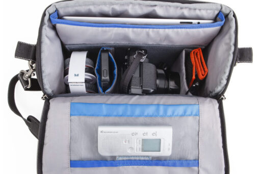 Think Tank Mirrorless Mover 30i to torba na ramię, która pomieści aparat bezlusterkowy z dwoma do czterech obiektywów i akcesoriami lub małą lustrzankę cyfrową z jednym do trzech obiektywów i akcesoria. Główna komora ma zapięcie na zamek i dwie wyjmowane, wyściełane przegrody do personalizacji wnętrza. Jedna z przegródek ma otwór na telefon lub podobnej wielkości akcesorium. Istnieje również dedykowane gniazdo do przechowywania iPada lub innego tabletu 10″. Odchylana pokrywa mocuje się do przedniej kieszeni na akcesoria za pomocą zamknięcia na magnes.
