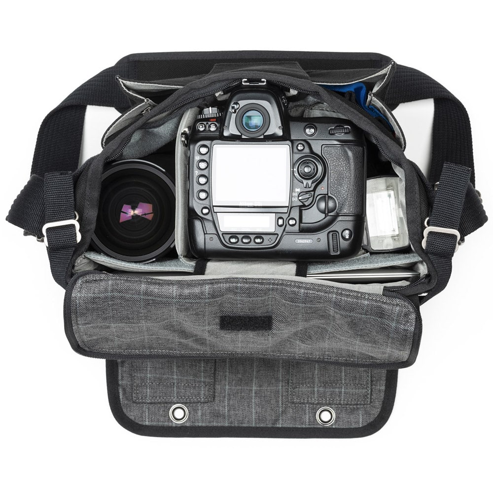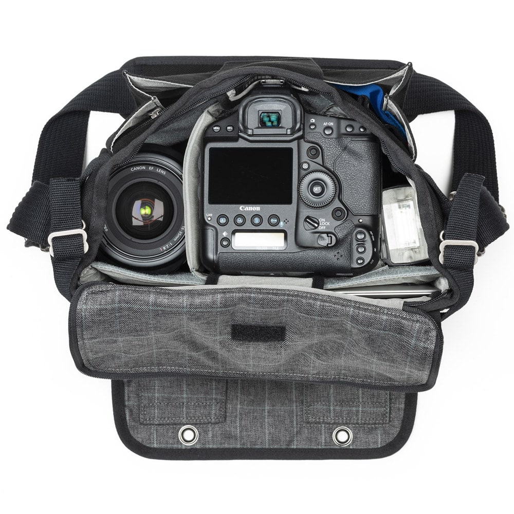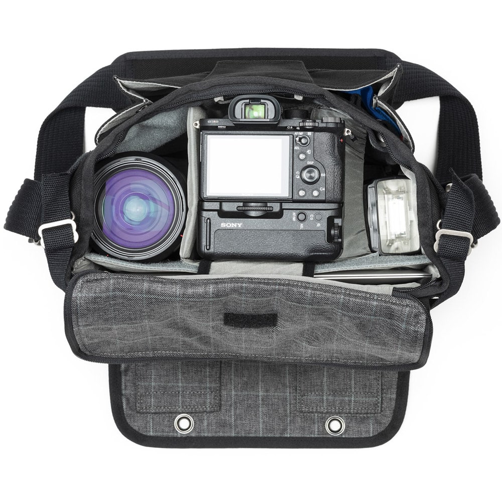 Elegancka torba dla fotografa w podróży. Retrospective 20 V2.0 od Think Tank może pomieścić kombinację korpusów aparatów, obiektywów, laptopów, tabletów i innych akcesoriów. Retrospective 20 V2.0 może pomieścić lustrzankę cyfrową, trzy obiektywy, lampę błyskową i 10-calowy tablet lub 12-calowy laptop. Ma zapinany na zamek otwór do głównej komory, a przednia klapa na rzep umożliwia szybki dostęp. Dedykowana rączka bagażowa przechodząca przez klapkę z tyłu torby ułatwia przenoszenie podczas podróży. Przednia komora może pomieścić kilka akcesoriów i zawiera zapinaną na zamek kieszeń na kosztowności. W zestawie znajduje się również pokrowiec przeciwdeszczowy z uszczelnionymi szwami, który całkowicie zakrywa torbę w przypadku niepogody.