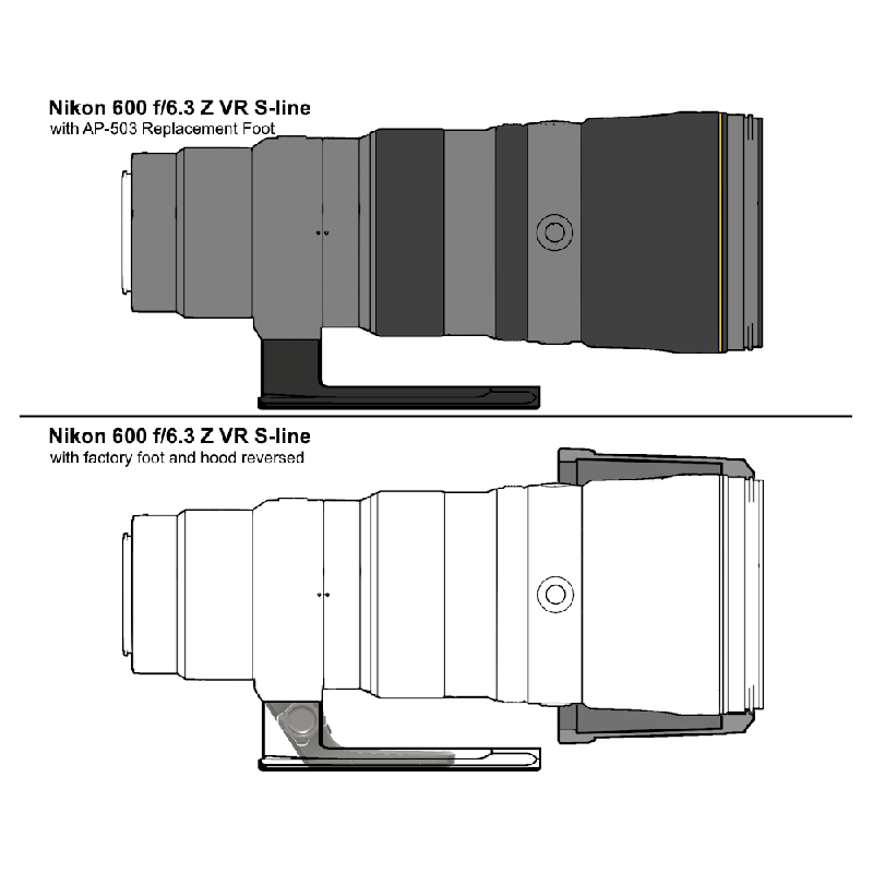 Stopę instaluje się zamiast oryginalnej stopy, przewidzianej przez producenta obiektywu. Jest ona niższa i obniża środek ciężkości obiektywu i zwiększa zakres wyważenia. Stopa ma mocowanie typu Arca-Swiss.