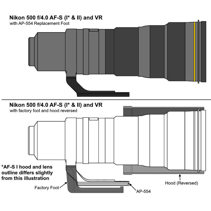 Płytkę instaluje się zamiast oryginalnej stopy, przewidzianej przez producenta obiektywu. Jest ona niższa i dłuższa – obniża środek ciężkości obiektywu o ok. 5 cm i zwiększa zakres wyważenia. Stopa ma mocowanie typu Arca-Swiss.