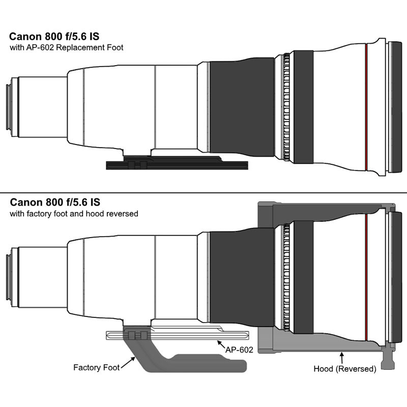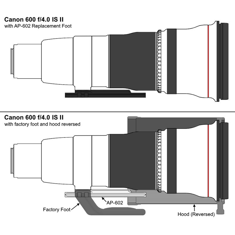 Stopę instaluje się zamiast oryginalnej stopy, przewidzianej przez producenta obiektywu. Jest ona niższa i dłuższa – obniża środek ciężkości obiektywu o ok. 4 cm i zwiększa zakres wyważenia. Stopa zastępuje płytką typu Arca-Swiss.